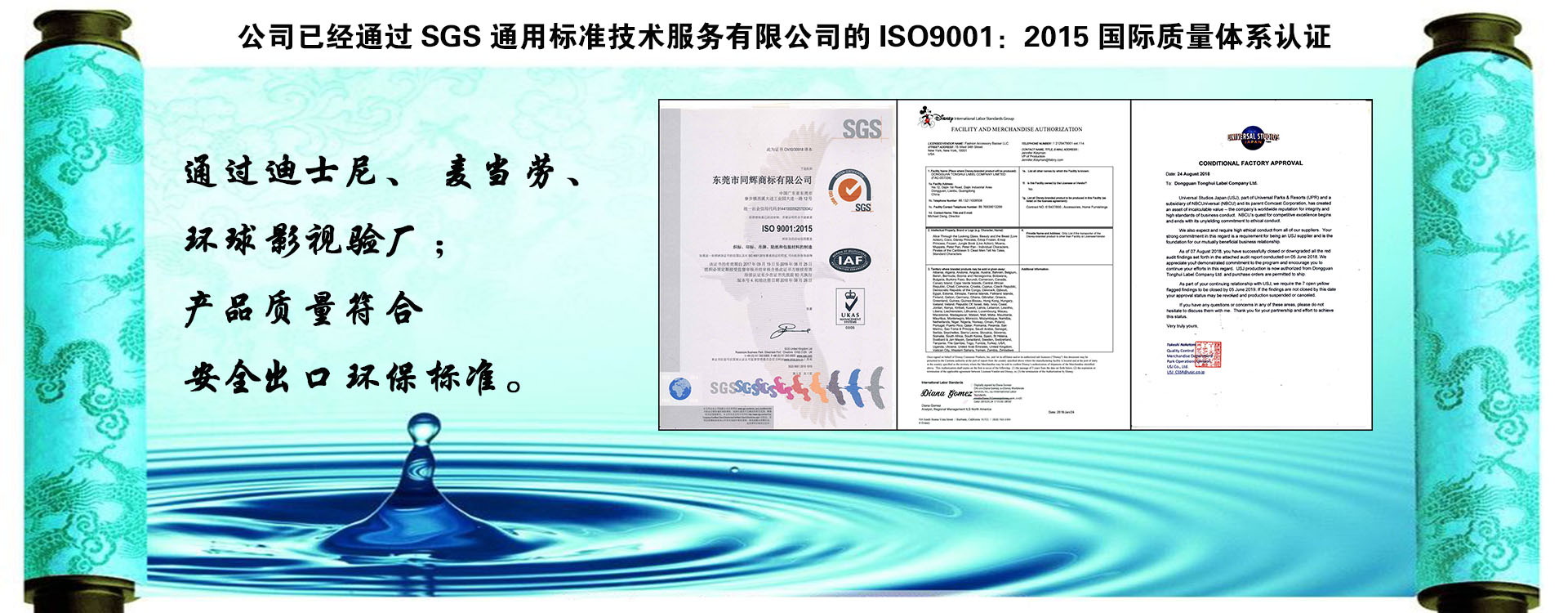 東莞市同輝商標(biāo)輔料及包裝印刷有限公司是一家專業(yè)從事商標(biāo)制造、包裝印刷的企業(yè),主營生產(chǎn)和銷售:各類織嘜商標(biāo),織章,印刷商標(biāo),印嘜,標(biāo)簽印刷,不干膠商標(biāo),絲印商標(biāo),熱轉(zhuǎn)印標(biāo),無感商標(biāo),燙嘜,皮牌商標(biāo),電壓商標(biāo)、商標(biāo)帶、繡花標(biāo),布貼標(biāo)、皮貼標(biāo)、商標(biāo)吊牌,彩卡,折盒等廣泛用于各行各業(yè)。工廠經(jīng)過多年的發(fā)展與開拓,規(guī)模日益發(fā)展壯大。從設(shè)計制作、工程研發(fā)、生產(chǎn)制造、產(chǎn)后加工、品檢、物流配送、售后服務(wù)等一套完整的優(yōu)質(zhì)服務(wù)體系,及優(yōu)秀的經(jīng)營管理團(tuán)隊。已通過SGS ISO9001:2008(新版是2015版)國際質(zhì)量體系認(rèn)證,產(chǎn)品質(zhì)量符合各國安全出口環(huán)保標(biāo)準(zhǔn)。承蒙國內(nèi)外客戶的大力支持,目前已有許多國際著名品牌定點授權(quán)我公司生產(chǎn),并是通過全球迪士尼FAMA認(rèn)證驗廠,麥當(dāng)勞驗廠,環(huán)球影視驗廠的供應(yīng)商,是各行業(yè)值得信賴并具有實力的合作伙伴。